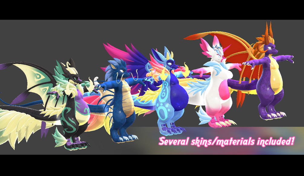 This new species of dragon has been modeled, textured and put together completely from scratch, by me, Estefanoida!. It is SDK3, physbones set-up and full body compatible!