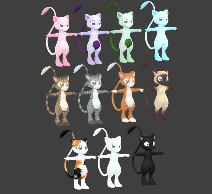 Original MewMei 3D Models (both PC and Quest), Substance Painter Link and PSD Texture files, Blender files, Unity Packages