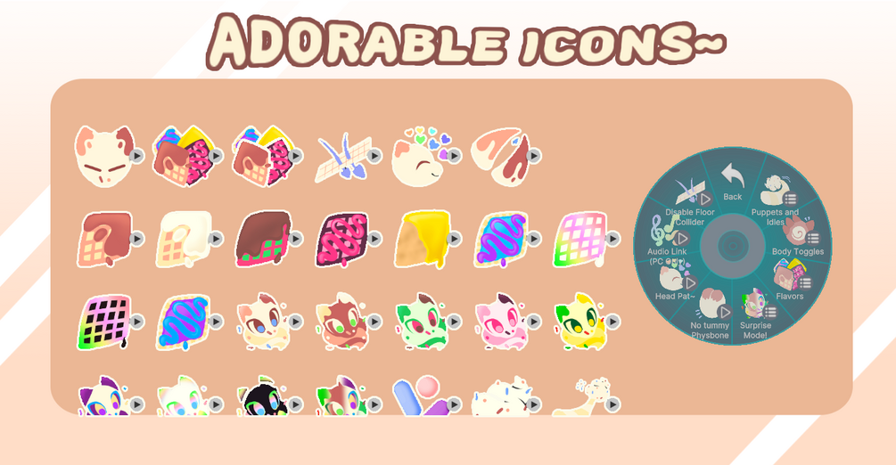 - Toggles for wings, swirls, drops, thumbs, horns and sprinkles