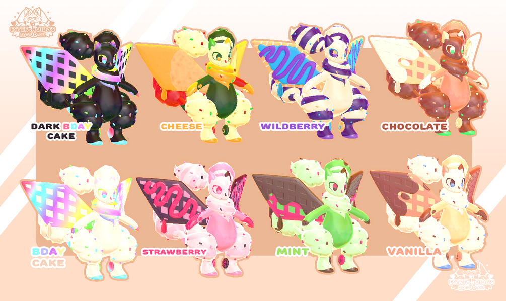 These adorable ice cream dragons have been modeled, textured and put together completely from scratch, by me, Estefanoida!
